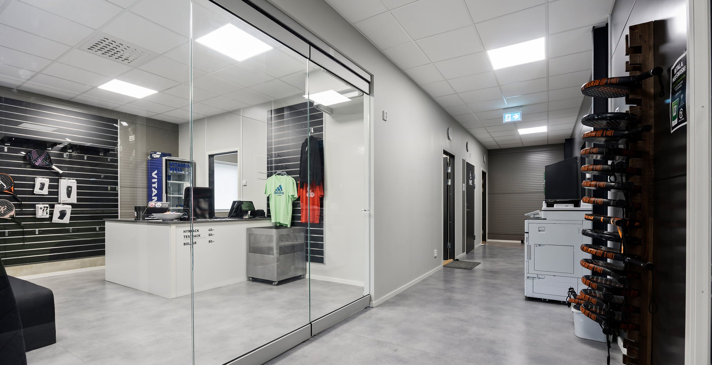 Fastigheten är idag inredd som padelhall men kan enkelt ställas om och anpassas för olika typer av verksamheter inom lager och industri.